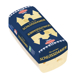 Schärdinger Schlossdamer wird seit Jahrzehnten in der Steiermark, in Voitsberg gekäst. Der Schnittkäse mit zahlreicher, unterschiedlich großer Lochung und mit geschmeidigem Teig gewinnt den milden, leicht-süßlichen nussigen Geschmack durch die Propionsäuregärung-Reifung. Für diese Reifung verantwortlich sind die Propionsäurekulturen, welche auch Kohlensäuregas (CO2) bilden und damit für die typische, kirschgroße Lochung des Schlossdamers verantwortlich sind. Den Schlossdamer gibt es in 150g Scheiben im SB-Regal und im Stück von der ca. 3kg Stange an der Feinkost-Bedienungstheke.